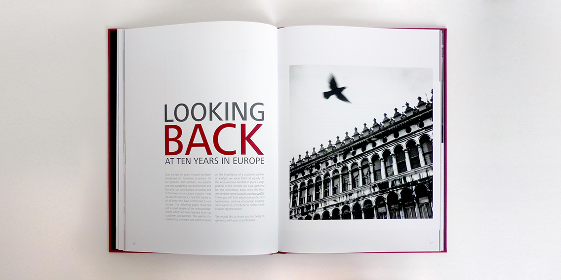 PROJECT Creating a Milestone-Book for internal purposes to celebrate the 10 year anniversary of Huawei in Europe (Germany, Junior Art Director at Ogilvy)